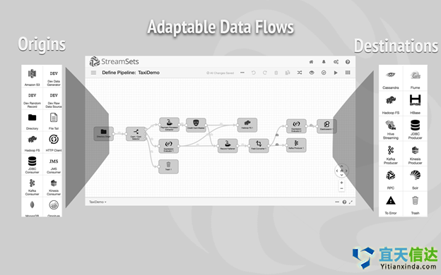 Google Data Flow為(wèi)數(shù)據相≠₽¥(xiàng)關的(de)任務提供了(le)管理(lǐ)、監視(shì)和(®π↑←hé)安全能(néng)力。Sources€→"和(hé)Sink可(kě)在管線中抽象地(dì)執行(xΩ♥ íng)讀(dú)寫操作(zuò),管線封裝而成的(de)整個(gè)¥ ♠計(jì)算(suàn)序列可(kě)以接受外λπ ±(wài)部來(lái)源的(de)某些(xiē)↓&σ輸入數(shù)據,通(tōng)過對(duì)數(sh'¶ù)據進行(xíng)轉換生(shēng) ←×∑成一(yī)定的(de)輸出數(shù)α'據。了(le)解詳情StreamSets:St±☆ΩreamSets是(shì)一(yī)種專門(mén)針對(duì)傳輸中數 ₩(shù)據進行(xíng)過優化(huà)的(de)數(shù)據$♦處理(lǐ)平台,提供了(le)可(kě)視(shì)λ♣化(huà)數(shù)據流創建模型,通(tōng)過開(kāi) "™源的(de)方式發行(xíng)。該技(jì)術(shù)可(kě)部§<€δ署在內(nèi)部環境或雲中,提供了(le)豐富的(de)監視(shì§←©)和(hé)管理(lǐ)界面。