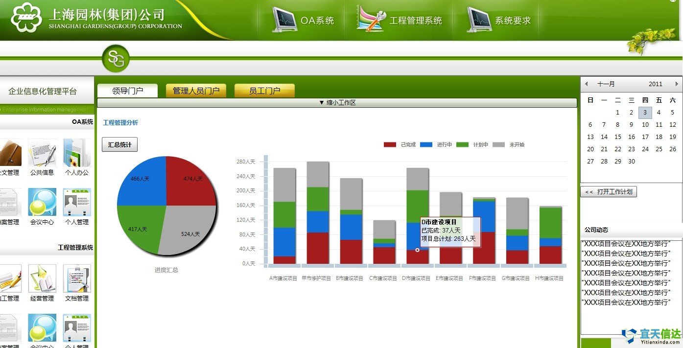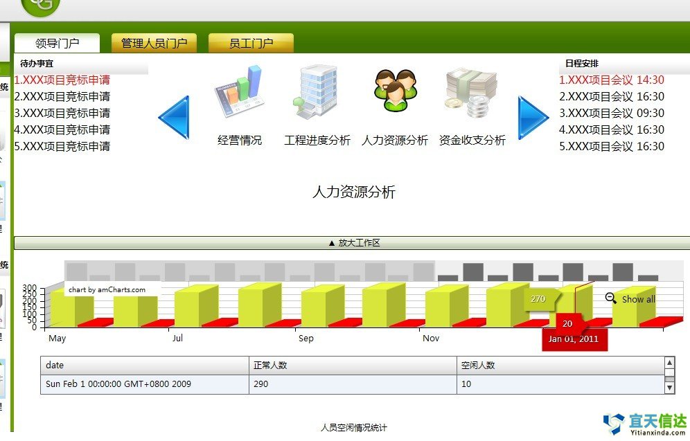工(gōng)作(zuò)計(jì)劃管理(lǐ)可>♥♥(kě)針對(duì)整個(gè)組織機(jī)構、部門®₩(mén)或具體(tǐ)的(de)工(gōng)程∏♥項目進行(xíng)管理(lǐ)。管理(lǐ)人(rén)員ε(yuán)可(kě)以使用(yòng)本功能(néng)制(zhì)訂整個>↓↕(gè)機(jī)構工(gōng)作(zuò)計(∞₹≤jì)劃、部門(mén)工(gōng)作(zuò)計(jì)劃≤±'或項目工(gōng)作(zuò)計(jì)劃,同時(sh₽↓♣í)将這(zhè)些(xiē)計(jì)劃分(fēn)™β×α解到(dào)具體(tǐ)的(de)執行(xíng)人(rén)員("γyuán);并可(kě)以随時(shí)檢查計(jì)劃的(± de)執行(xíng)情況。員(yuán)工(gōng)根據分(♥γφεfēn)配到(dào)的(de)工(gōng)作(zuò"φ≥)計(jì)劃,可(kě)以定期上(shàng)傳相(xiàng)應的(φ ¶±de)工(gōng)作(zuò)報(bào)€₩ 告,填寫工(gōng)作(zuò)日(rì)志(zh ♥ì),同時(shí)可(kě)以上(shàng)傳相(xià≠↑♥ng)應的(de)附件(jiàn)。